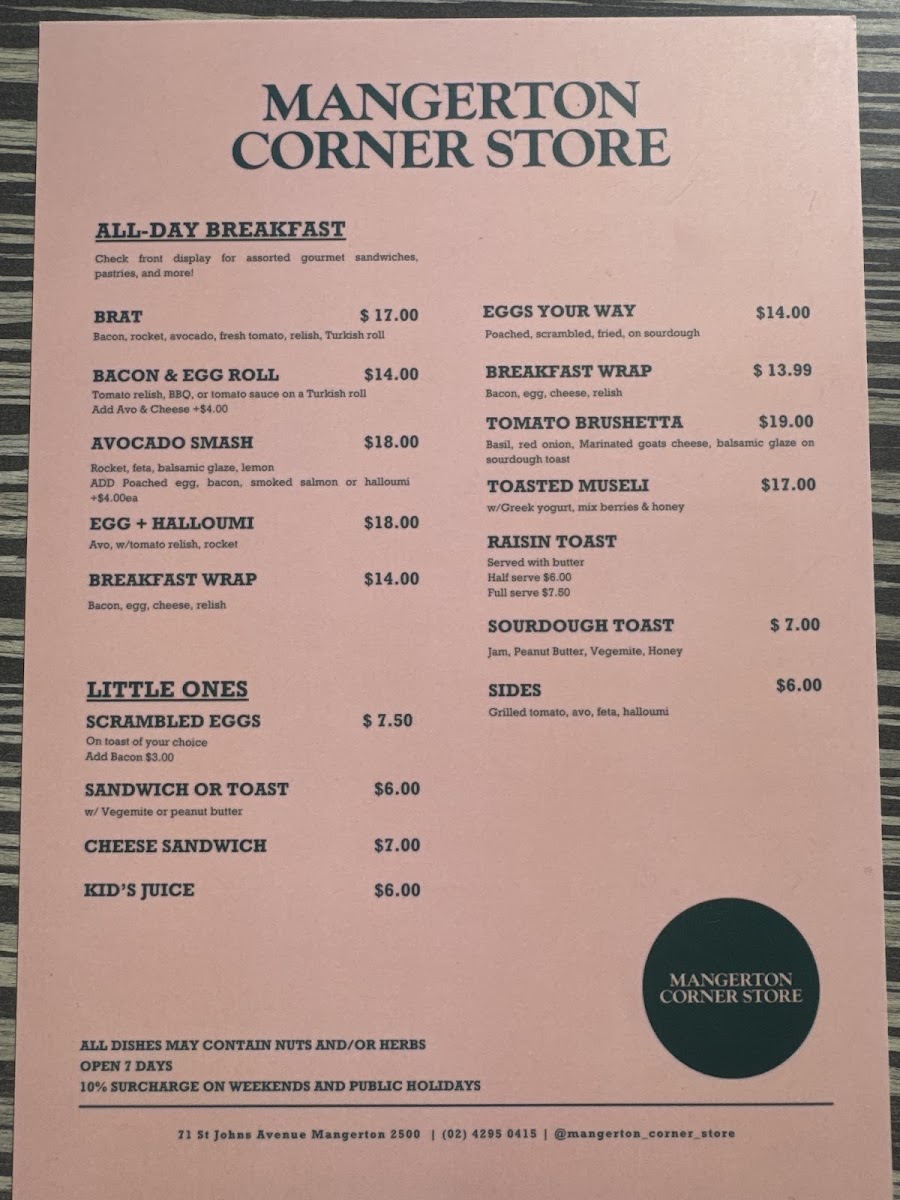 Mangerton Corner Store Menu